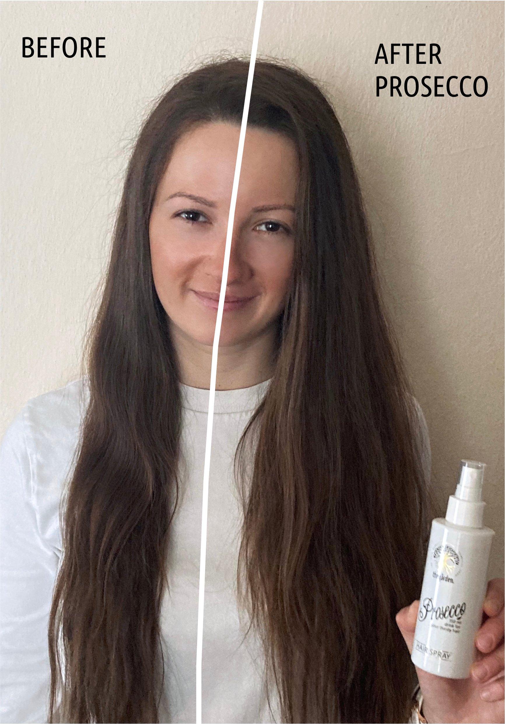 To moisturise hair for longer, use products with a sealing effect, such as Hair Prosecco Spray. So hair stays hydrated for a much longer time.