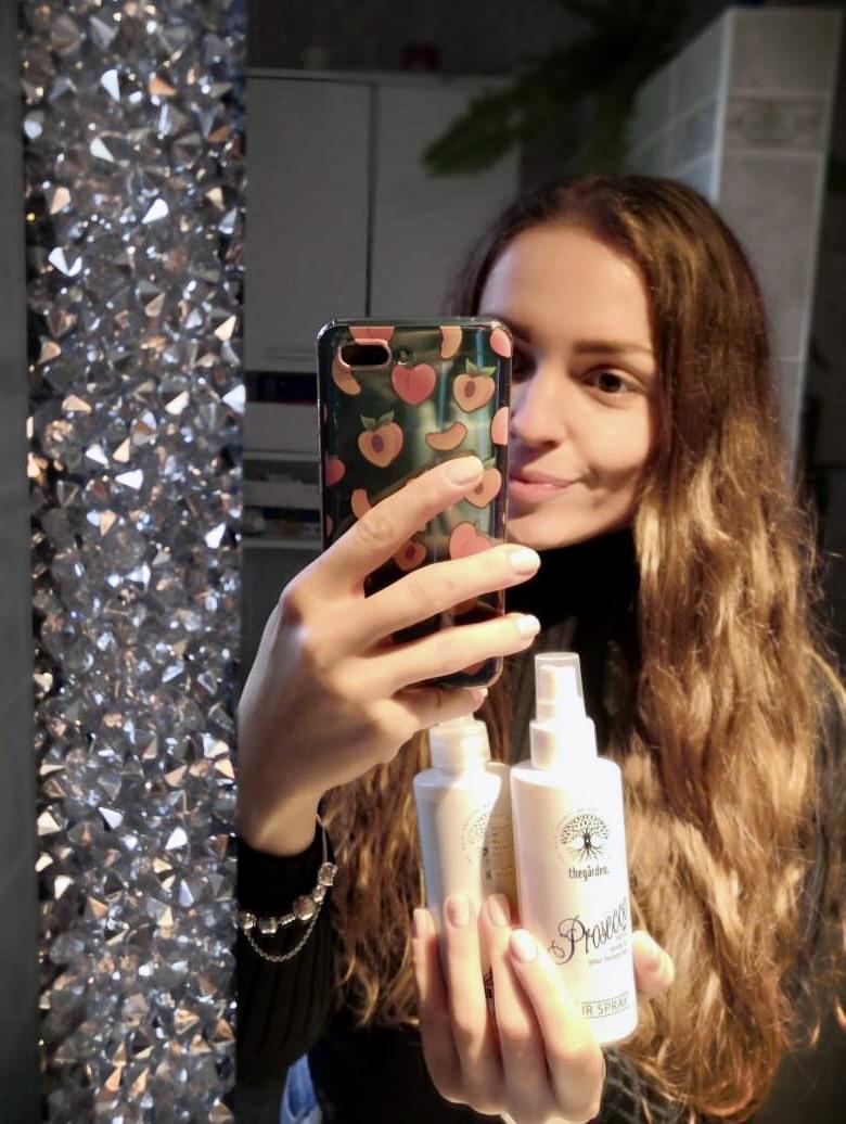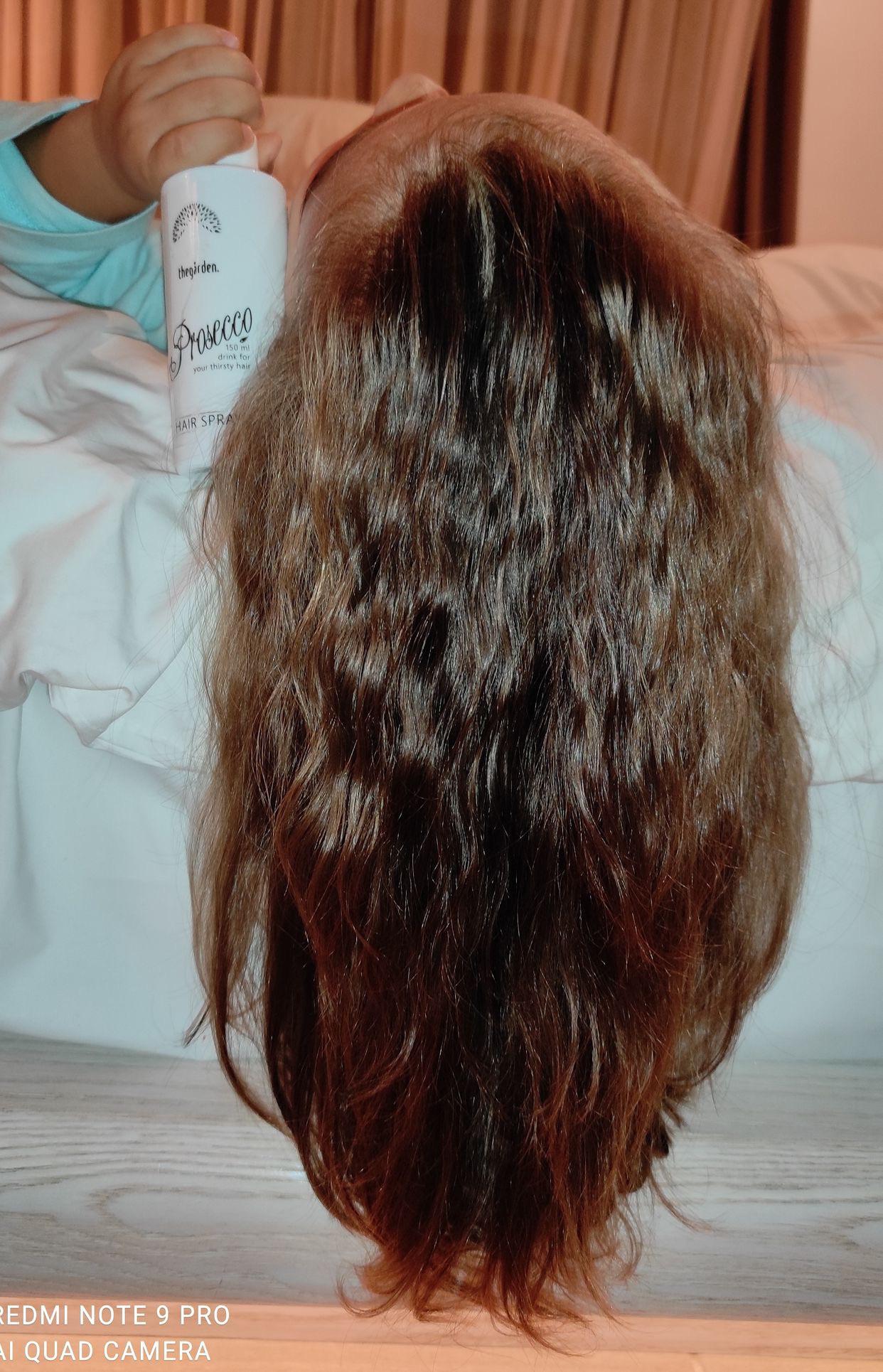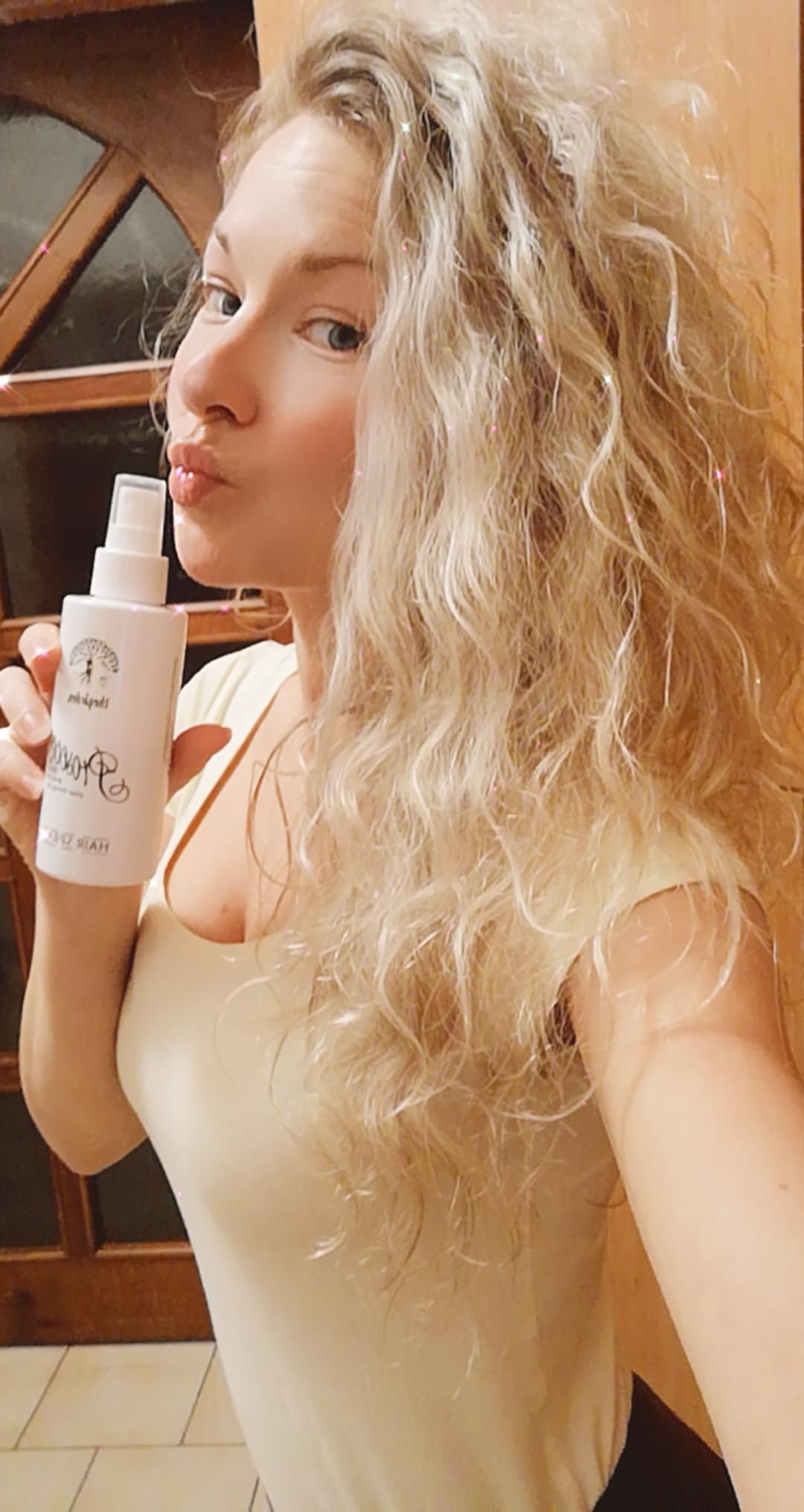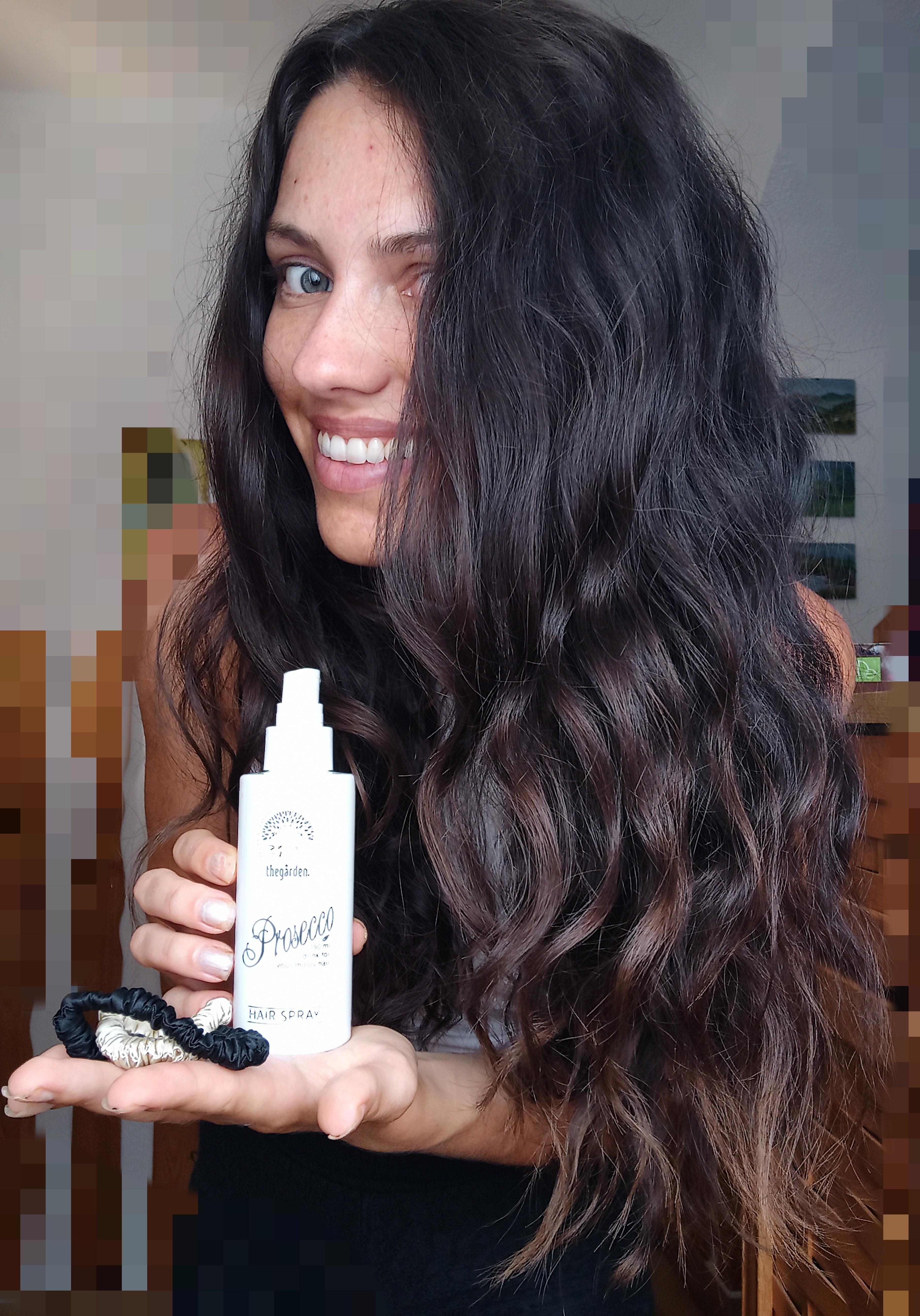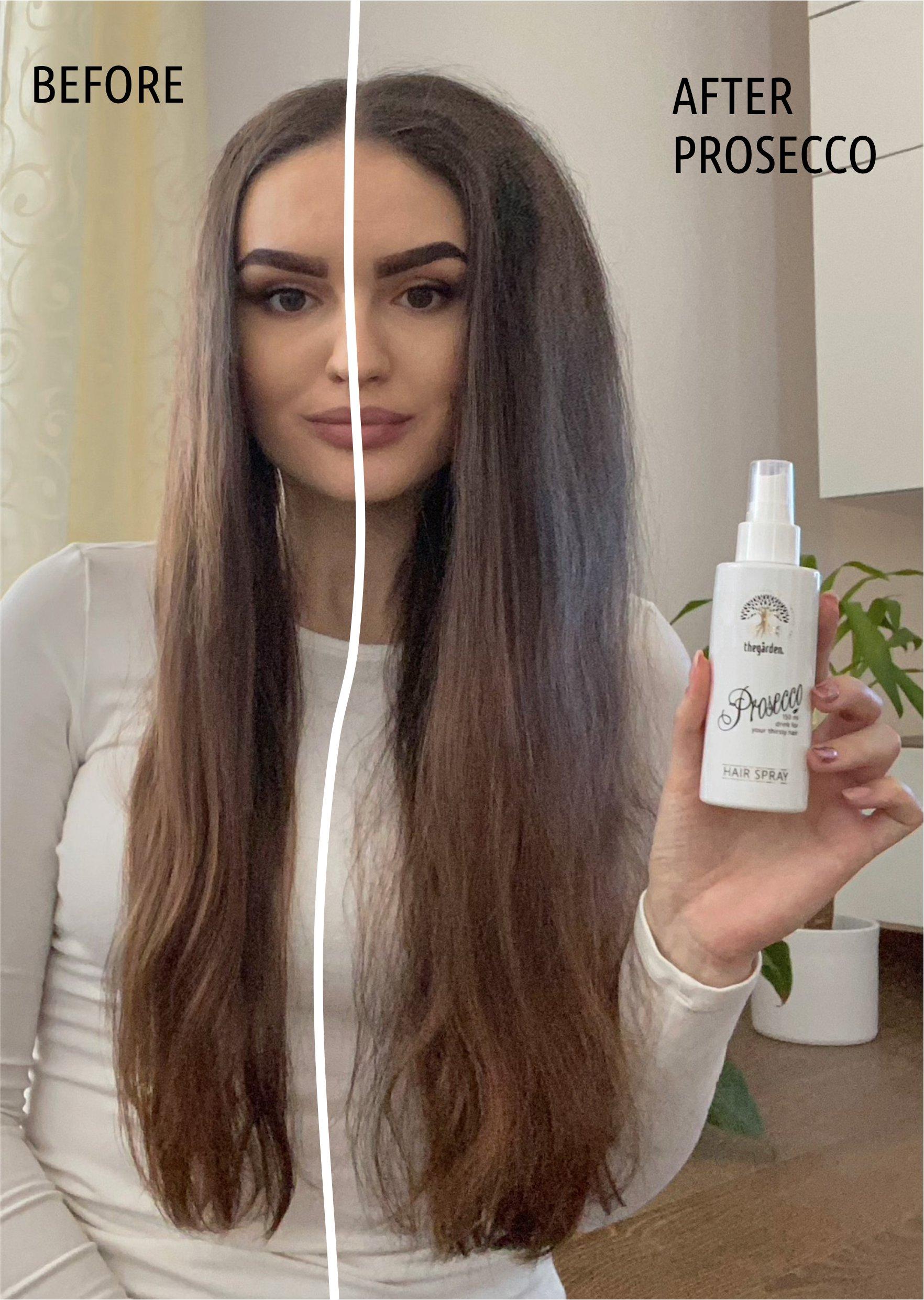 As I mentioned in the video, one of the helpers that prevents hair from drying quickly is also Hair Prosecco Spray. The size fits in your handbag so you can carry it with you at all times during dry, summer days and use it as needed when your hair feels dry.