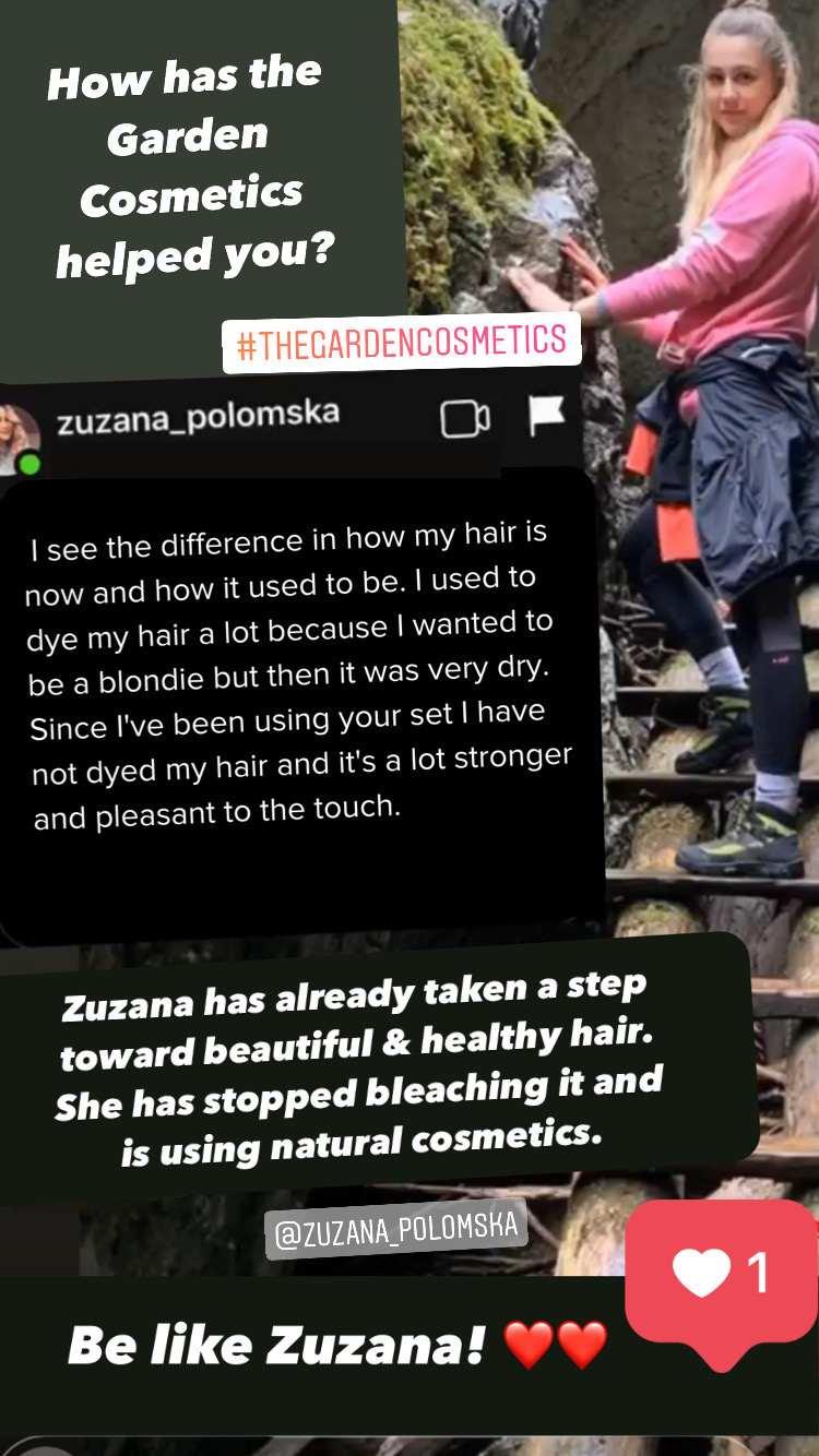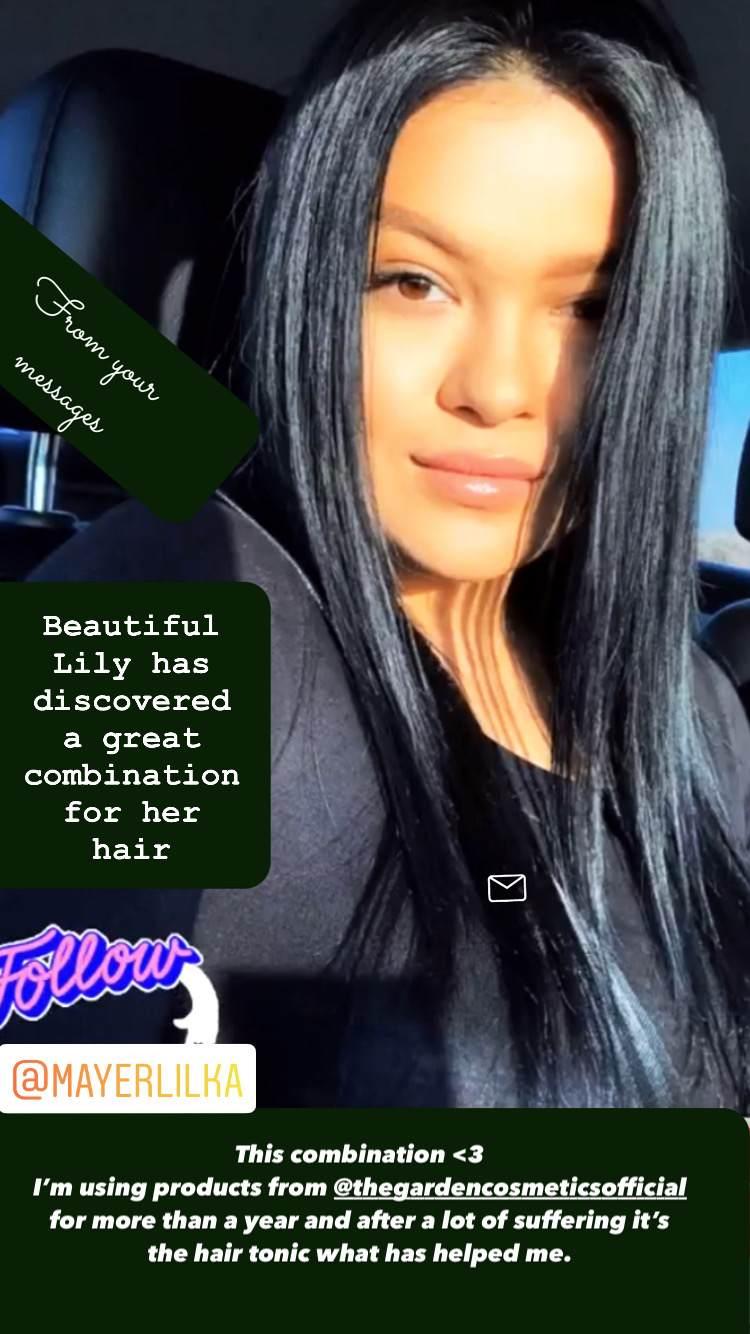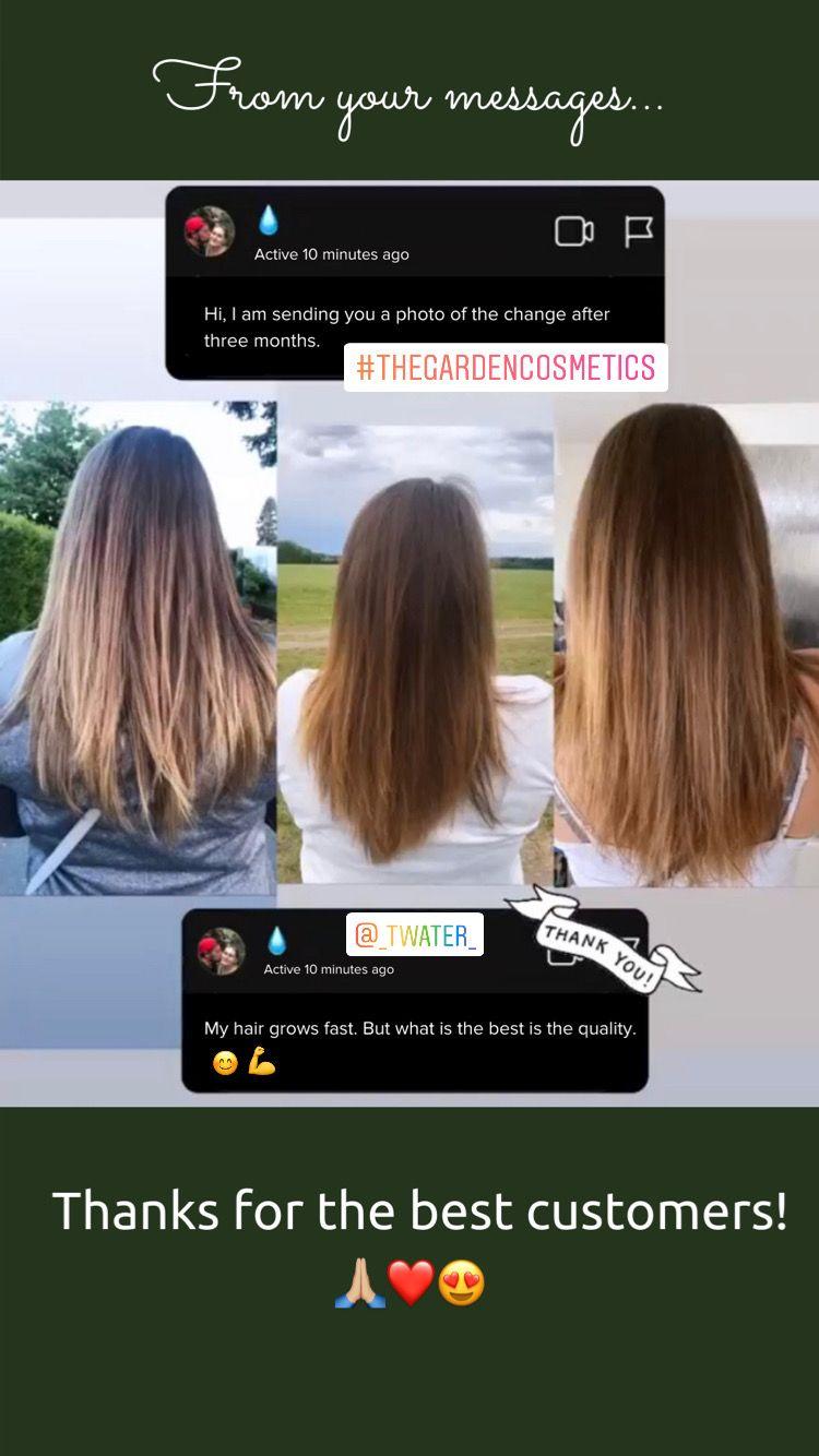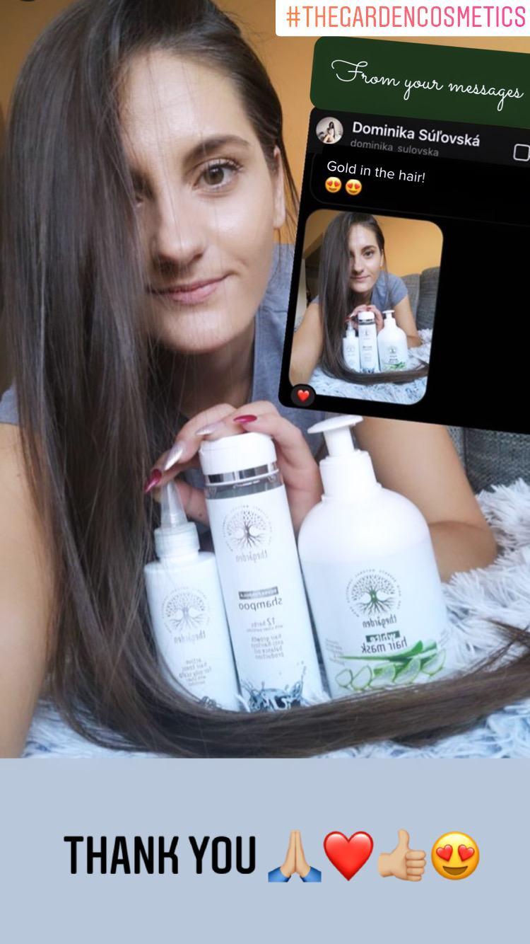 "I would like to thank you. I haven't dyed my hair as I was afraid it would be dry and damaged but I have probably never seen my hair that healthy. I have been using your cosmetics only for a while but my hair is like I was at a salon very day.❤️"
