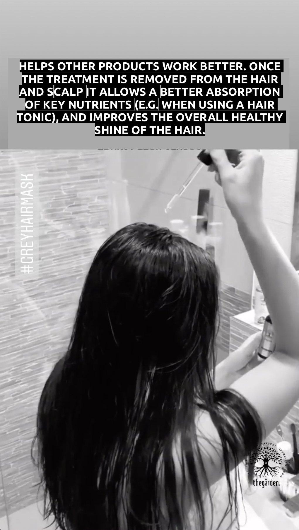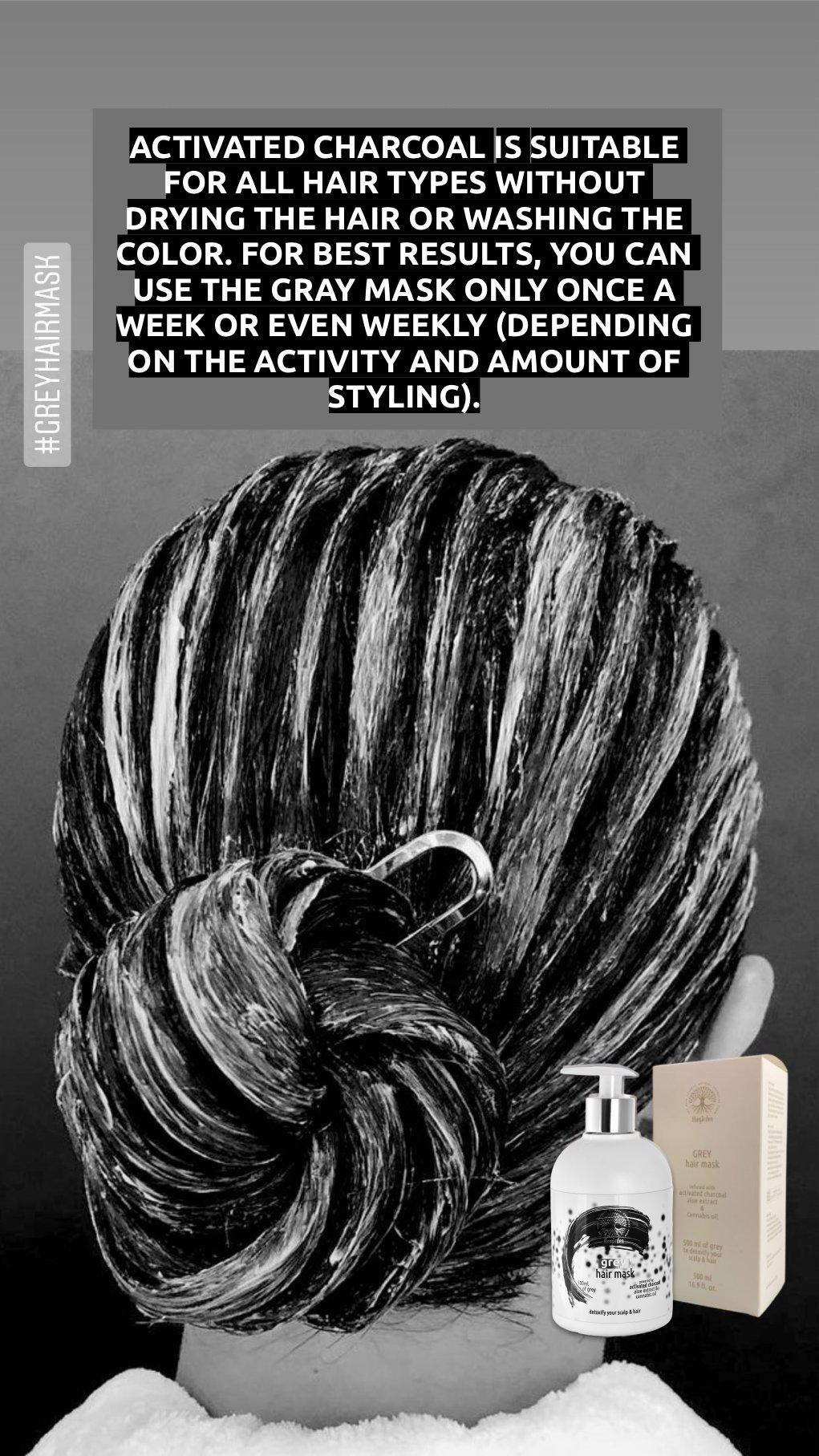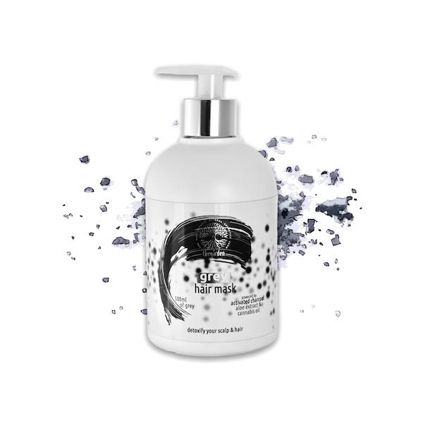 The first uses Grey Hair Mask, a pre-shampoo detoxifying hair and scalp treatment mask with encapsulated activated charcoal, aloe vera and hemp oil in a unique liquid crystal technology: