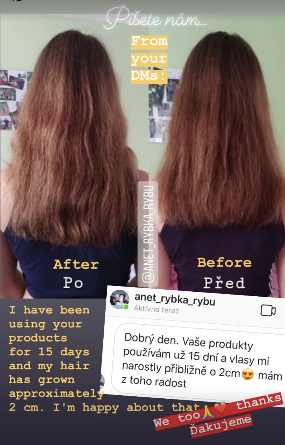 And customers also write their experiences with faster hair growth directly on the e-shop in the reviews of individual products, for the fastest hair growth choose definitely the HairCell Therapy set, or start with a FREE HAIR TEST.